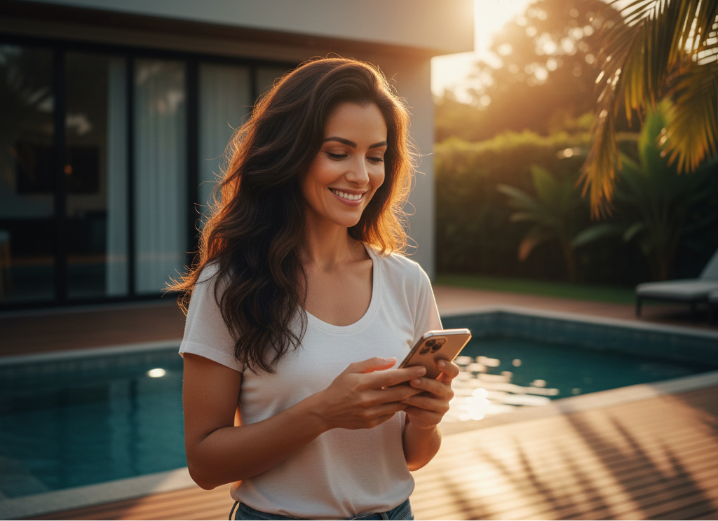 Programe horários de funcionamento, regule a intensidade, confira o nível de sal da piscina e receba avisos em tempo real através do aplicativo Tholz Casa Inteligente, um app criado para tornar sua experiência ainda mais intuitiva e conectada.